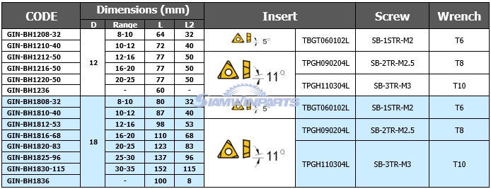 - ก้าน 18 มม.ใช้กับหัวคว้าน YCT-BB และ GIN-BHB