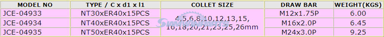 ER MILLING CHUCK SET   JCE-04900 (DIN – 6499)