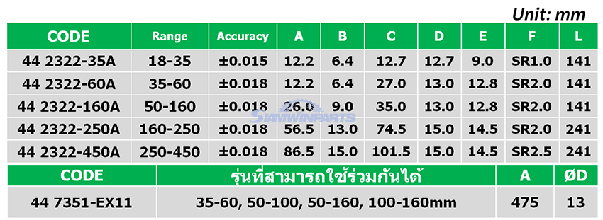 - มาพร้อมไดอัลเกจ (2380-10FA) ความละเอียด 0.01มม. พร้อมขาวัดและแหวนเสริม